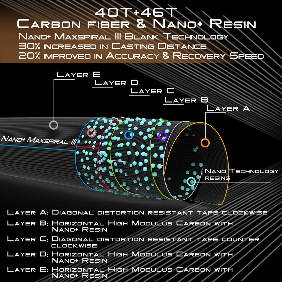 Reel seat: Woven graphite & gold-anodized aluminum reel seat